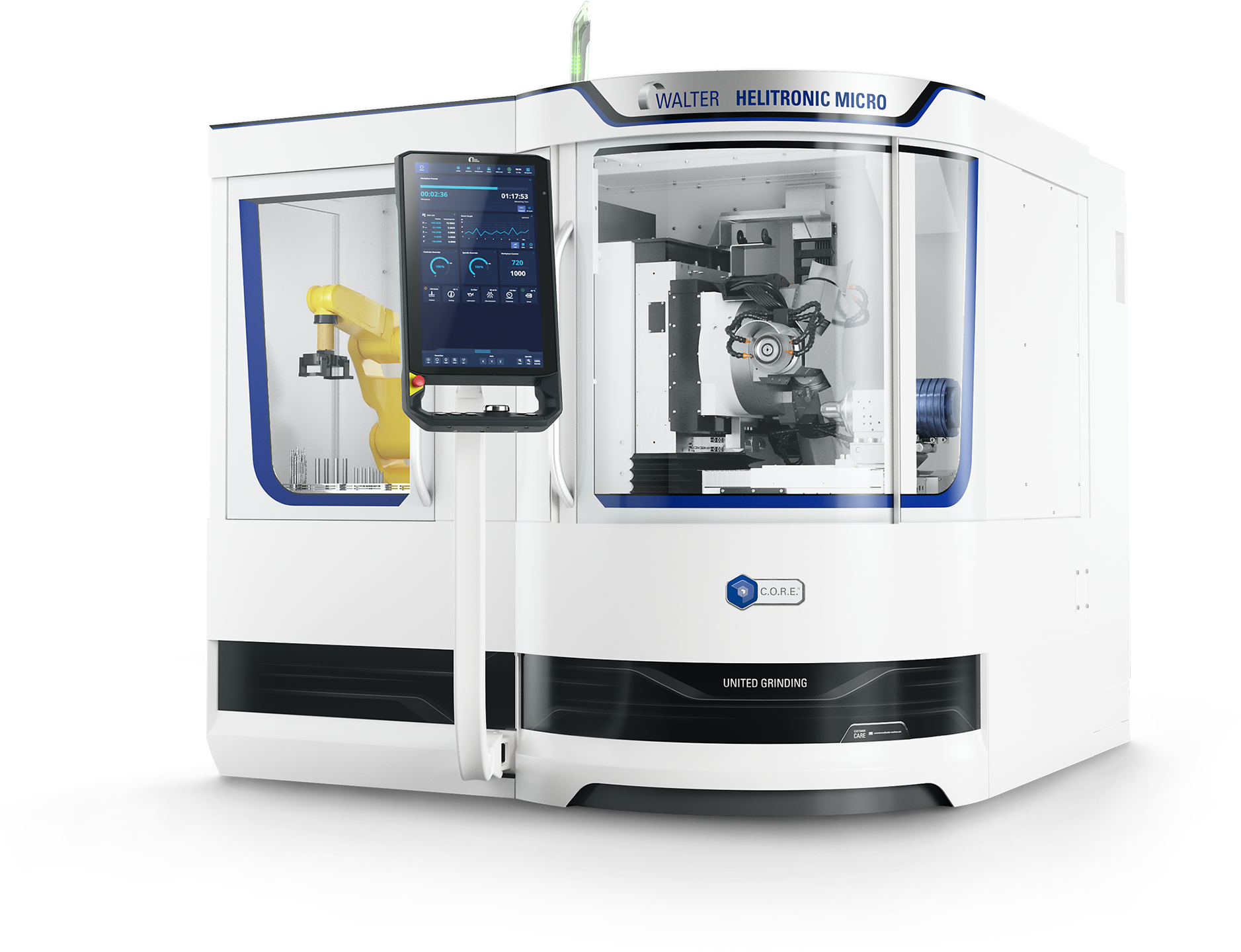 6軸數(shù)控機床針對加工微小刀具并配置有特殊設(shè)計的混凝土床身。所有軸均為直驅(qū)以實現(xiàn)高生產(chǎn)率和高精度。機器人裝載機系統(tǒng)。