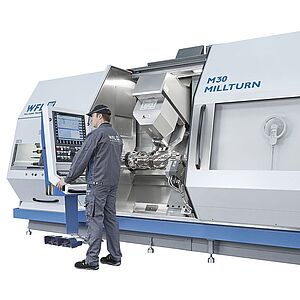 新型M30/M35、M30-G/M35-G系列機(jī)床是創(chuàng)新與標(biāo)準(zhǔn)的結(jié)合。這一小型多功能車-鉆-銑中心可加工旋徑達(dá)520mm的復(fù)雜軸類及 盤類零件,且加工長度達(dá)2000mm。它既可以作為一臺車床、一臺6 軸加工中心、如需要還可作為切齒或深孔鉆機(jī)床。