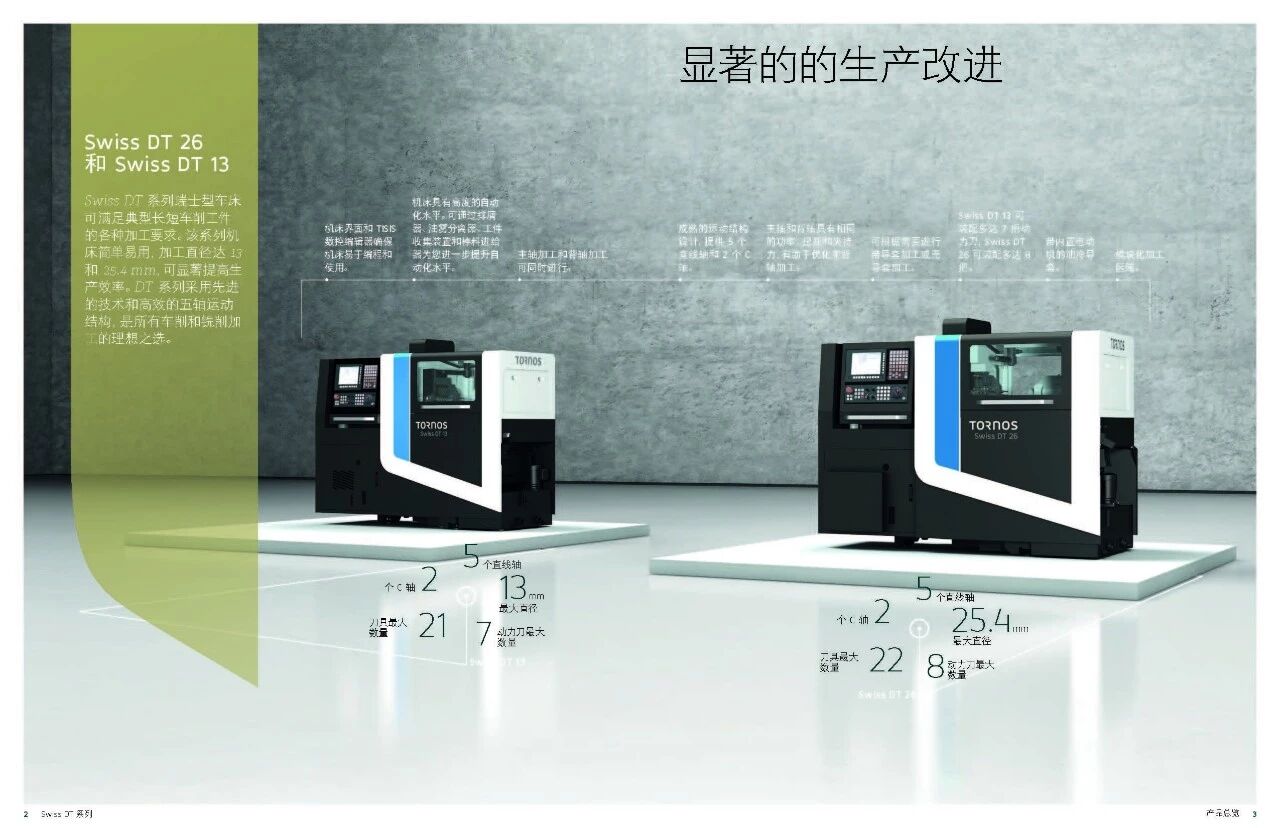 Swiss DT 系列瑞士型車床專業(yè)設(shè)計滿足典型長 短車削工件的各種要求。該系列機床簡單易 用,加工直徑達(dá) 13 和 25.4 mm,可顯著提高生 產(chǎn)效率。Swiss DT 系列采用先進(jìn)的技術(shù)和高效的五軸運動結(jié)構(gòu),是所有車削和銑削加工的理想之選。