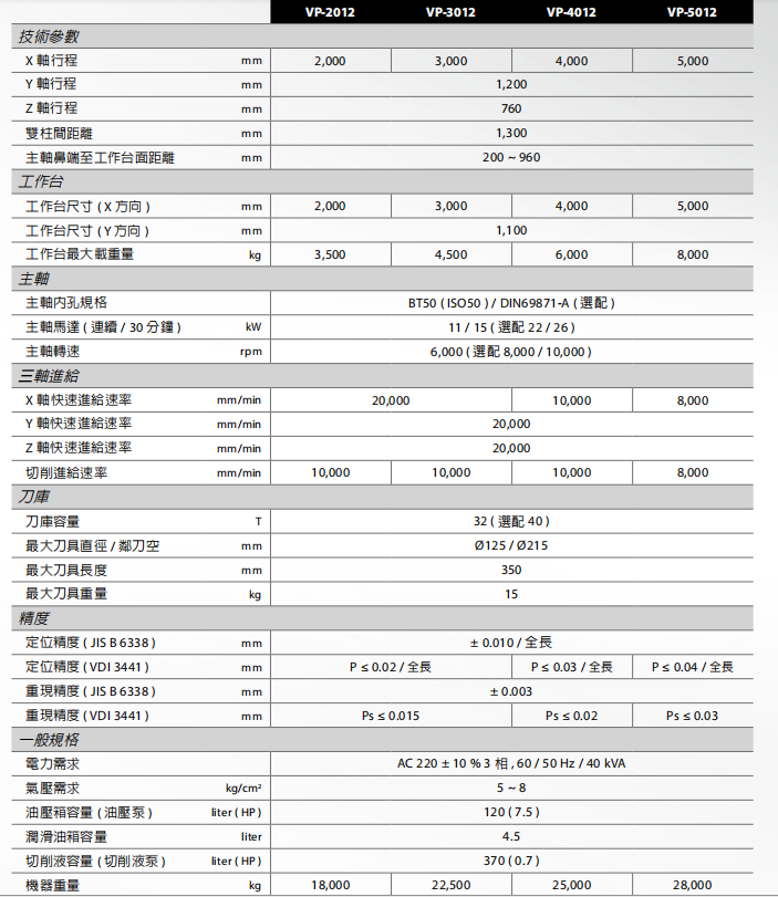 臺(tái)灣亞崴龍門加工中心五軸加工機(jī)vp 系列