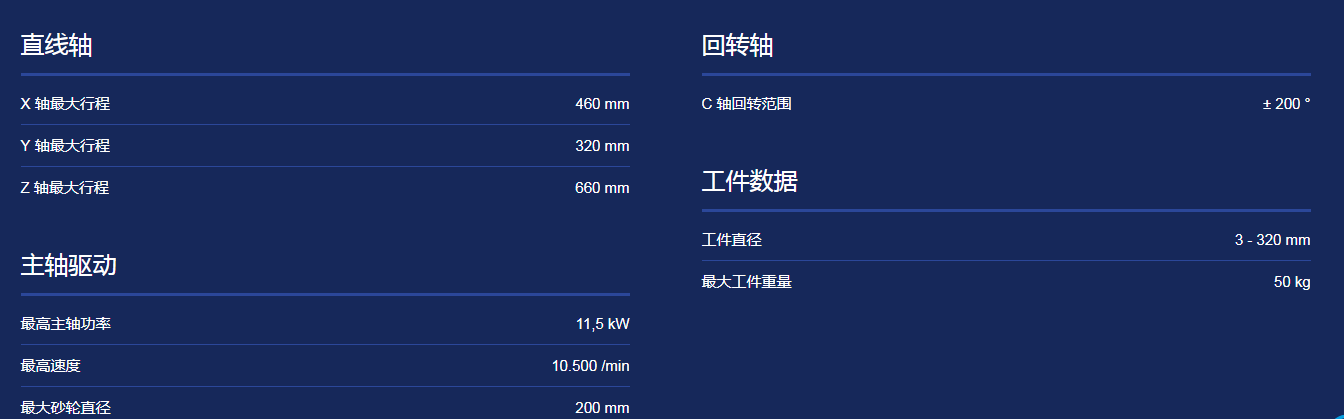 HELITRONIC RAPTOR 是有效磨削和修磨旋轉(zhuǎn) 對稱型刀具的理想入門級機器,而且占地面 積較小。適用于直徑為 3 至 320 mm、含端面 加工的刀具長度最大為280 mm、單件重量最 大為 50 kg 的刀具。