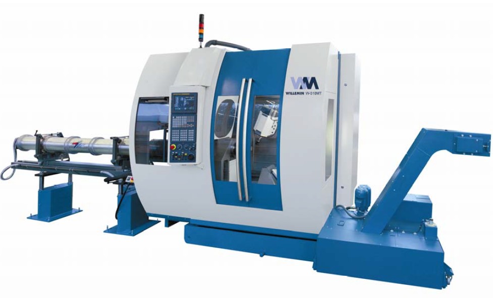 518MT加工中心可配備多種自動(dòng)系統(tǒng),自主操作性極強(qiáng),尤其適用于棒給和零件的裝卸。通過一個(gè)棒料進(jìn)給裝置或一個(gè)棒料供應(yīng)系統(tǒng),棒料可裝入A軸分度盤。 可配備各種裝置的518MT加工中心,其超強(qiáng)的靈活性可以裝載長(zhǎng)/短棒料,棒料的直徑可達(dá)65mm,各種裝卸系統(tǒng)可用于卸載成品零件。為了進(jìn)一步加強(qiáng)機(jī)床 的自動(dòng)性,威力銘-馬科黛爾公司可在機(jī)床上配備一支萬能操作臂,用于裝載和移動(dòng)零件至/從庫(kù)區(qū),也可用于卸載棒料邊角料。威力銘-馬科黛爾公司可根據(jù)客戶 需求提供特殊的解決方案。