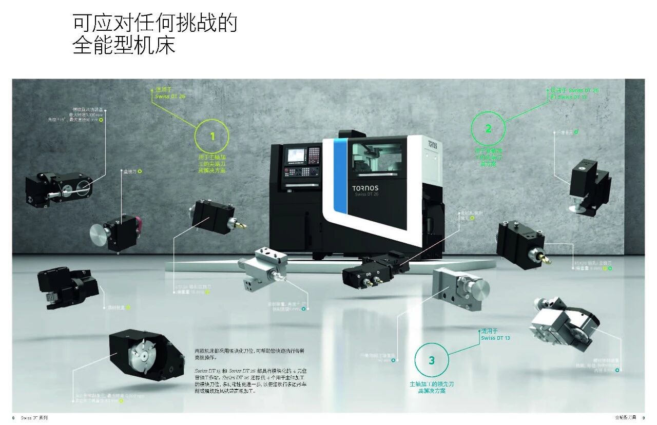 Swiss DT 系列瑞士型車床專業(yè)設(shè)計滿足典型長 短車削工件的各種要求。該系列機床簡單易 用,加工直徑達(dá) 13 和 25.4 mm,可顯著提高生 產(chǎn)效率。Swiss DT 系列采用先進(jìn)的技術(shù)和高效的五軸運動結(jié)構(gòu),是所有車削和銑削加工的理想之選。